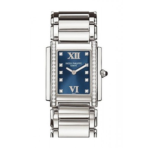 Schnellsuche Replik Patek Philippe Twenty Four Blaues Zifferblatt 30 mm Damenuhr 4910/10A-012